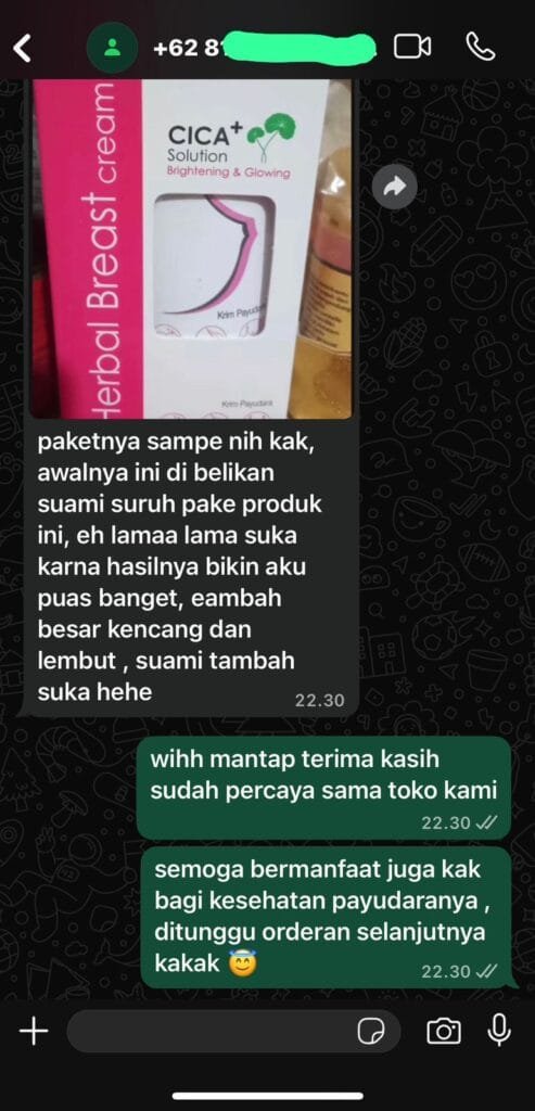 Krim herbal alami yang membantu mengencangkan, merawat, dan menjaga elastisitas payudara agar tampak lebih indah & sehat, dan dapatkan bonus spesial