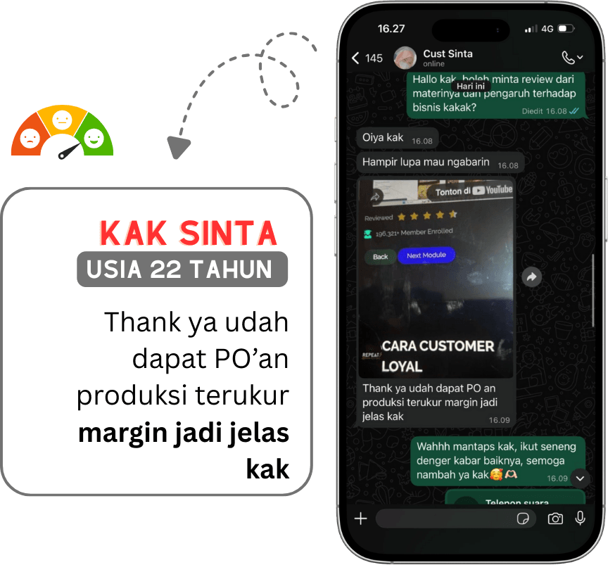 • Kelas Repeat Order Strategi (Senilai Rp95.000): Strategi Mengoptimalkan penjualan hingga kamu memiliki CUSTOMER LOYAL