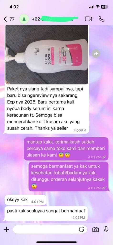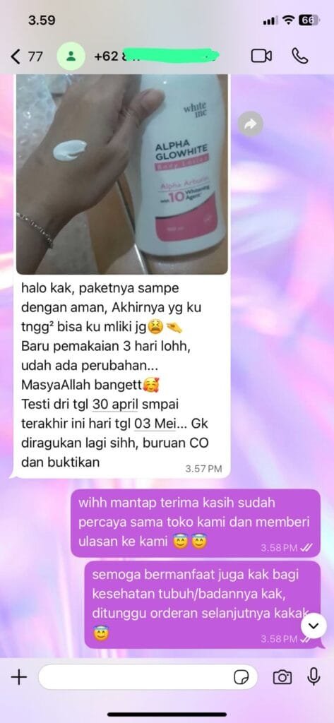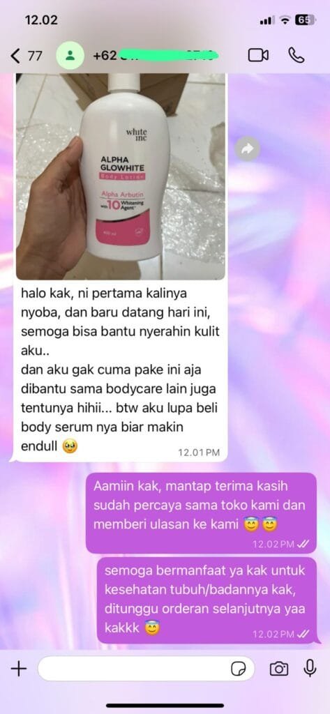 Rasakan kulit cerah lembap seharian.bersama WHITE INC Alpha Glow White Body Lotion Whitening & Moisturizing